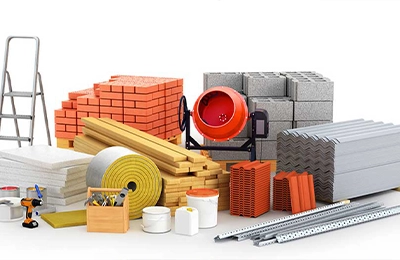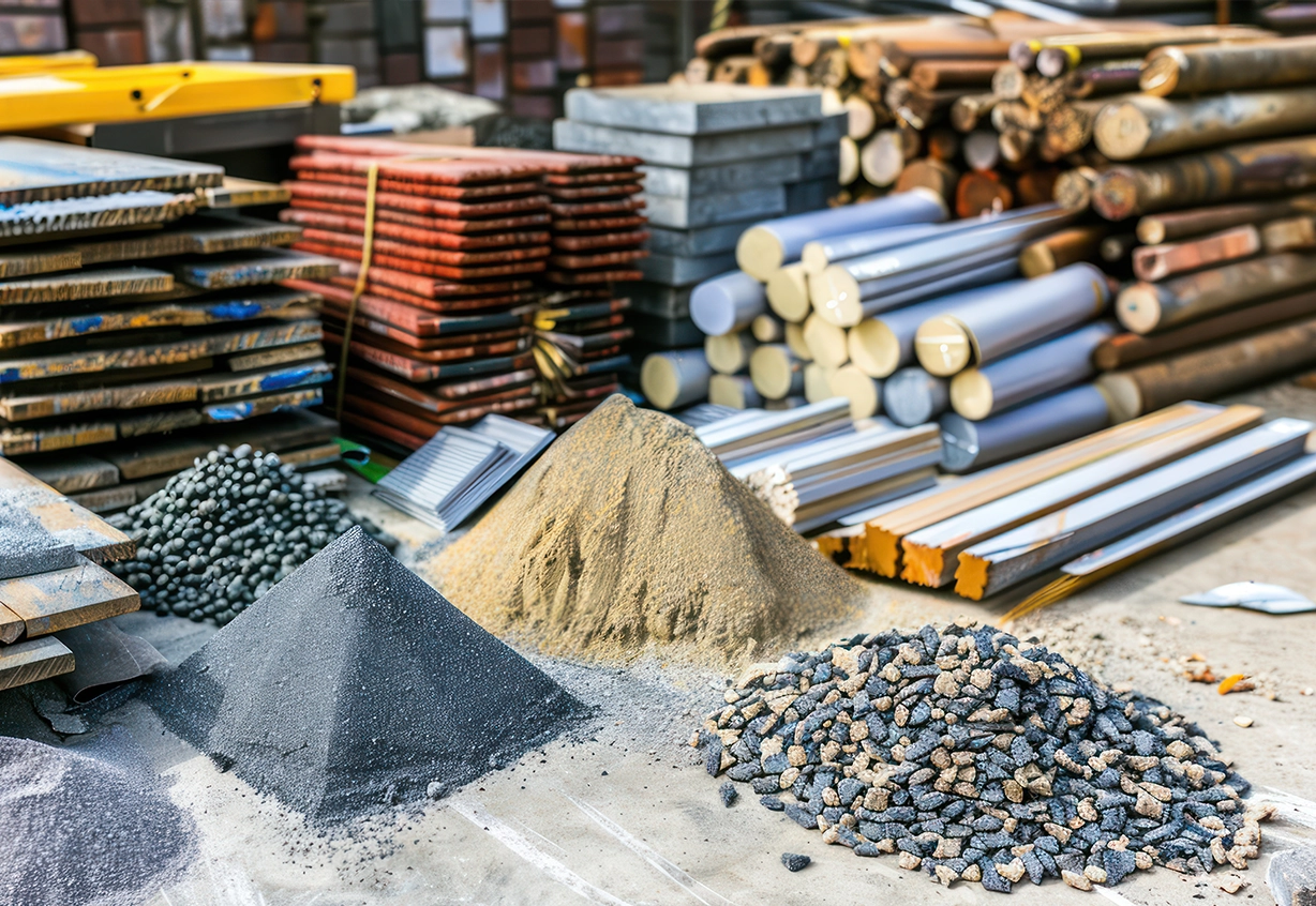 İnşaatın temelini oluşturan ana ürünler. Çimento, kum, çakıl, demir,boru, tuğla ve beton gibi malzemeler
